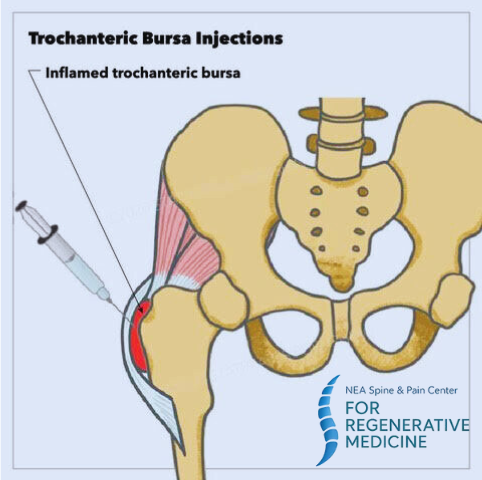 If bursitis is suspected as the cause of your symptoms, Dr. Abraham, board-certified anesthesiologist and pain management specialist at New England Advanced Spine and Pain Center for regenerative medicine, would recommend bursa injections for hip pain or bursa injections for shoulder pain.